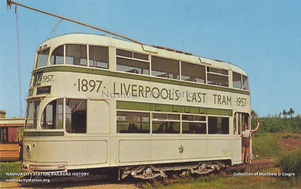 No. 293, a streamlined, four-wheel double-decker, is one of the most modern designs of British trams. It was built by the Liverpool Corporation Transport in 1939 and made the 'Last Tram' run in Liverpool on September 17, 1957. Visitors to the museum can enjoy old-fashioned trolley rides daily during the summer season. "World's Oldest and Largest Electric Railway Museum."