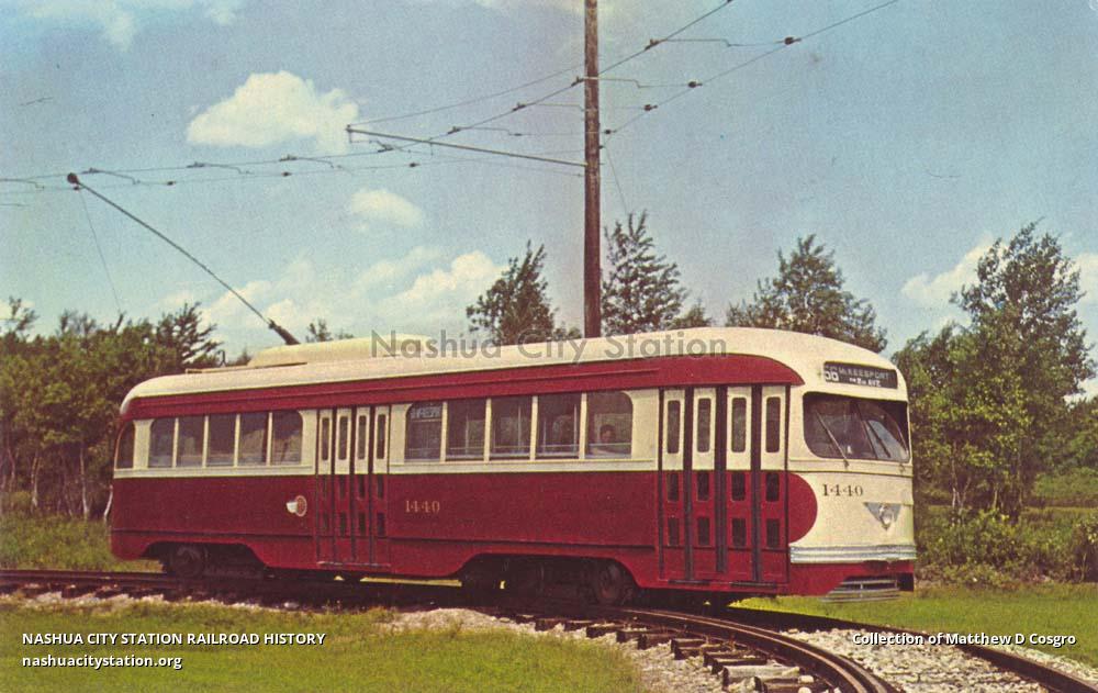 Built in 1942 by the St. Louis Car Company for the Pittsburgh (Pennsylvania) Railways, PCC Car 1440 was acquired by the Seashore Trolley Museum in 1968 from the Port Authority of Allegheny County. The trucks have been regauged so the car can run on museum trackage, and the body has been refurbished inside and out. With the acquisition of 1440, Seashore's collection embraces nearly every type of streetcar from horsecar to streamliner.
