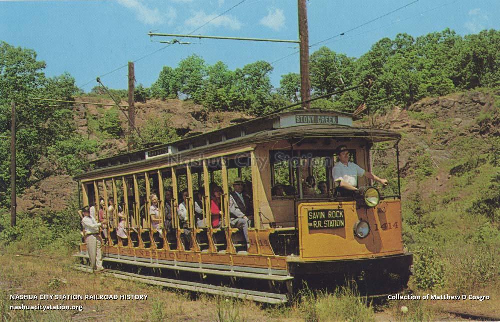 Now, as in grandpa's day, No. 1414, open car built by Osgood Bradley in 1911 takes you out of the 'Atomic Age' for a cool breezy ride into the past. The museum is an operating railway consisting of over 40 electric cars - "Horse car to Streamliner." Cool shaded picnic area. Located near The Green in East Haven (Connecticut Turnpike Exit 51). Schedule of Trolley Operation: July and August - Daily; June and September - Saturday & Sunday; April, May, October, November - Sunday.