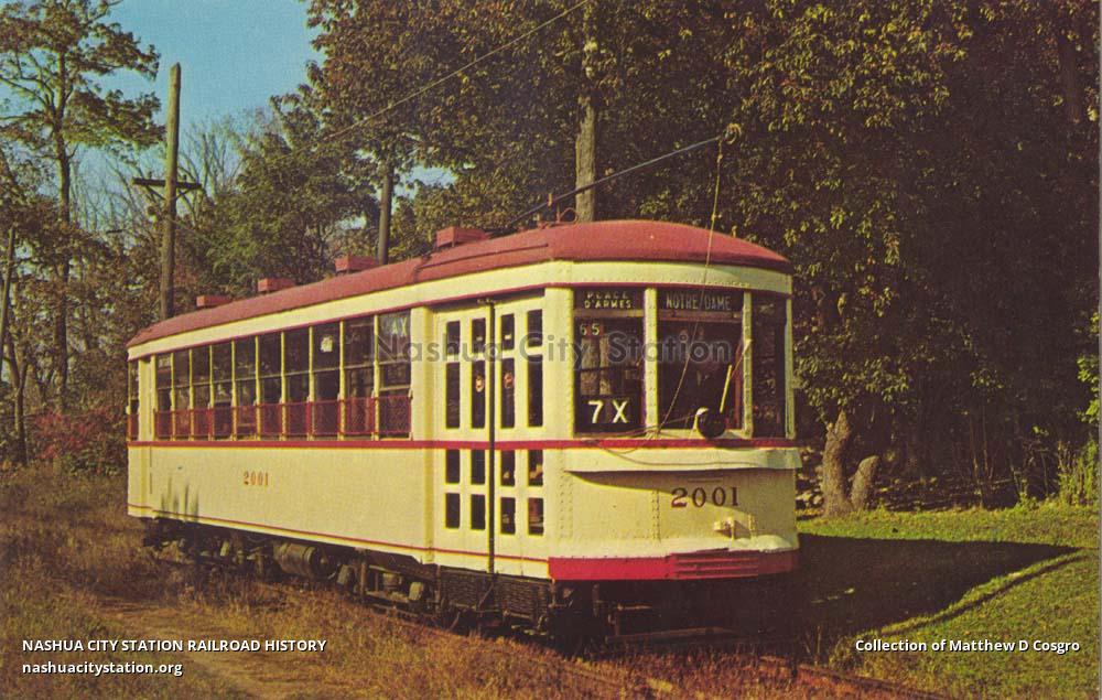 Montreal lightweight No. 2001 heads inbound to the museum's carbarns in late afternoon. Lightweights like this were used in many cities during the '20s and '30s. No. 2001 is one of ten Canadian trolleys that can be seen at the museum. Schedule of Trolley Operation for Visitors: July and August - daily; June - Saturday & Sunday; April, May, September, October, November - Sunday afternoons.