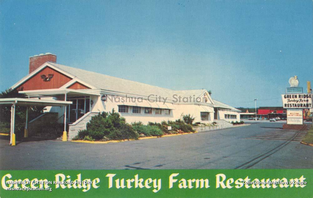 South Nashua, New Hampshire - U.S. Route 3, Exit #1 Everett Turnpike. "New England's Favorite Family Restaurant." New Hampshire's landmark is famous for all fine foods and specializes in native roast turkey. Early American Cocktail Lounge. - Tel. 603-888-0221