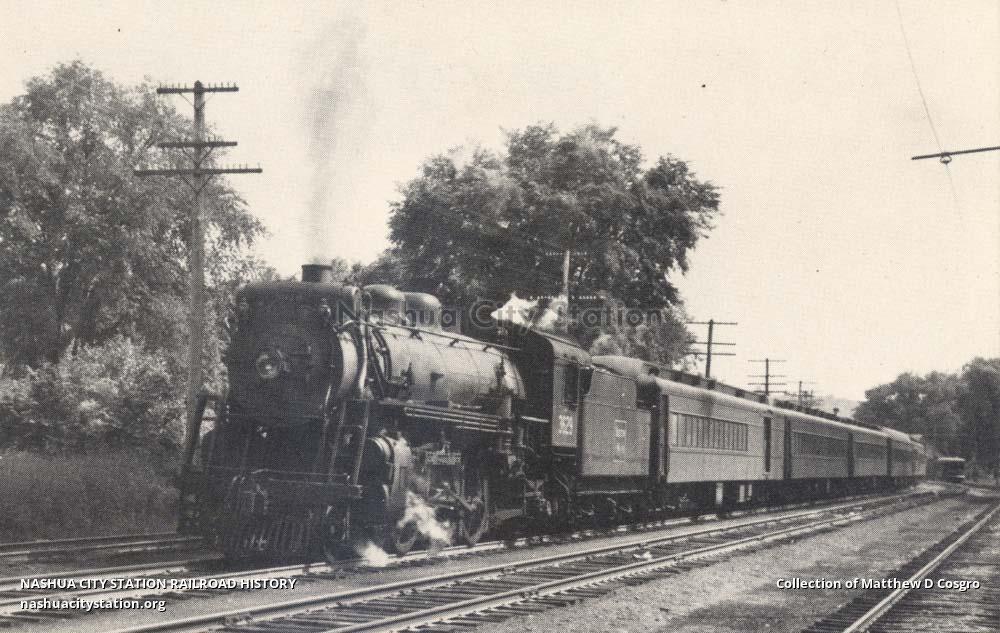 Boston & Maine No. 3629 4-6-2 on northbound passenger train at Charlestown, New Hampshire, 1942