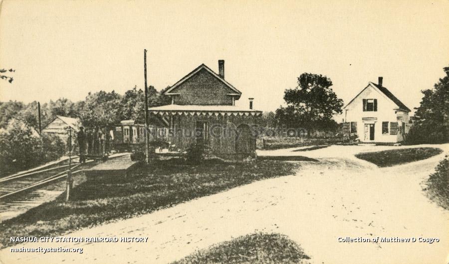Cotton Valley Station, about 1900. This Station, 6 miles from Sanbornville and Wolfeboro, had a full-time agent and a freight building. The Clow Steam Saw Mill is in the background.
